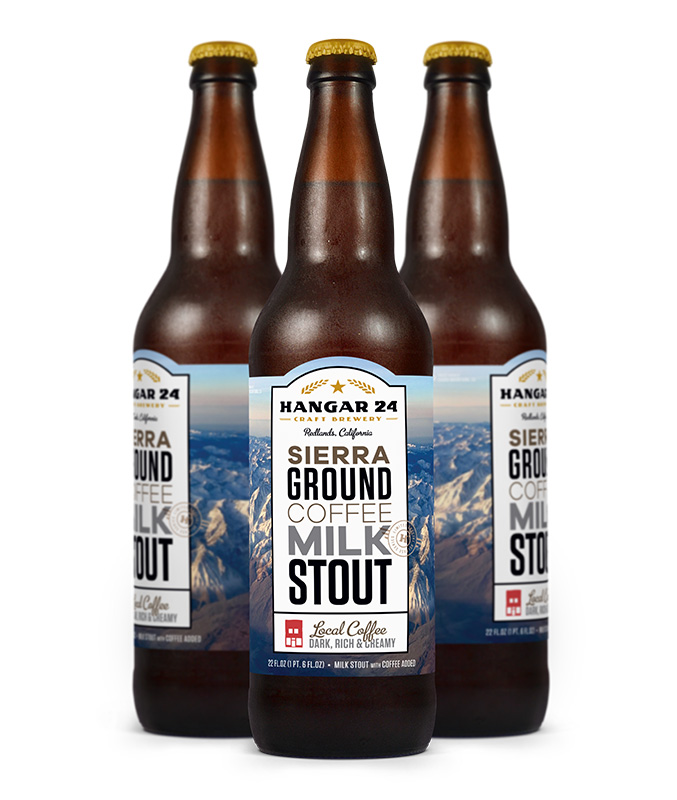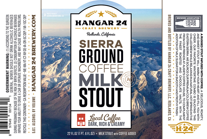 (Redlands, CA) – Dark, roasted and with the right amount of sweetness is the ideal way to describe our new Sierra Ground Coffee Milk Stout, Hangar 24 Craft Brewing’s latest addition to the Special Release Series lineup. Infused with cold brew coffee from our friends at Augie’s Coffee in Redlands, the roasted flavor comes from both coffee beans and chocolate malt. Add milk sugar for a smooth finish and Sierra Ground Coffee Milk Stout could become your new favorite beverage while sitting by the fire in a cozy chair, warm blanket on your lap while reading a book.