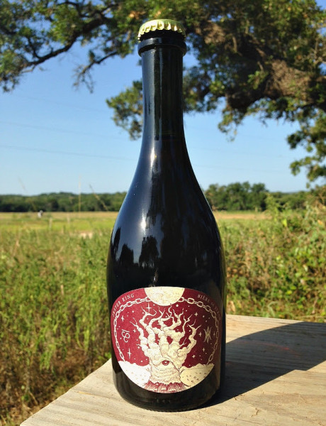 The grapes used in the refermentation of Bière de Syrah came from the 2014 harvest in California. We attempt to use native Texas fruit whenever possible, but in this case, we had difficultly sourcing Texas grapes last year. Most of the grapes from the 2014 Texas harvest went to winemakers. Fortunately, we’ve developed some great relationships with wineries in our area, so hopefully this will be the last time we source grapes from California, or anywhere outside of Texas.