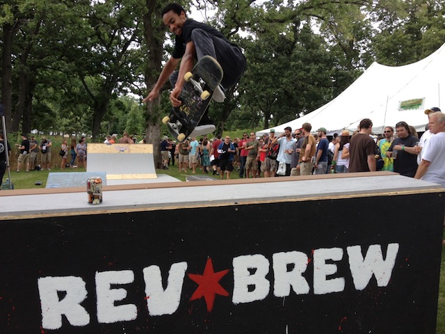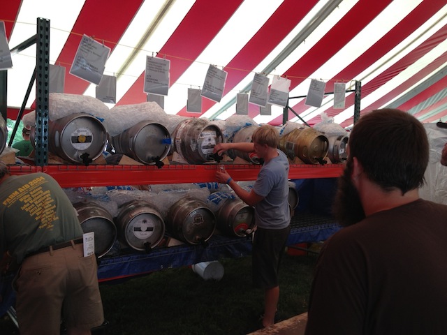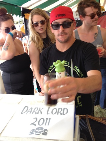 Revolution had a skate park set up for adventure seeking attendees (not something you’d likely see at a California beer festival – especially without helmets involved). DESTIHL had a few great special releases, including the Sour Apricot and Flanders Oud Bruin. Being from the West Coast, I was happy to sample Fat Head’s Head Hunter IPA. After checking out a few other breweries in this area, I went to the Real Ale Tent, which featured approximately 70 cask ale beers. Seeing all the casks lined up was a sight to behold! I sampled a few, but with the sunny weather, I wanted my beer a bit cooler and decided to head back to Three Floyds. With a full glass of water to re-hydrate, I decided to wait in line and inquire about the status of the Dark Lords. After speaking with others in line, I found out Dark Lord 2011 came and went. Hoping for Dark Lord 2013, I decided to wait in line. Twenty minutes or so later, I arrived at the very front of the line and there seemed to be confusion and shuffling going on behind the bar – the Dark Lord 2013 sign was added and within minutes the tap was flowing – I was the first in line! It was delicious – probably the best beer I tasted at the festival, but the darker, maltier types of beers are my preference. I realized I could probably get back in line for a second pour, but there were so many other great breweries I wanted to visit, so I carried along.